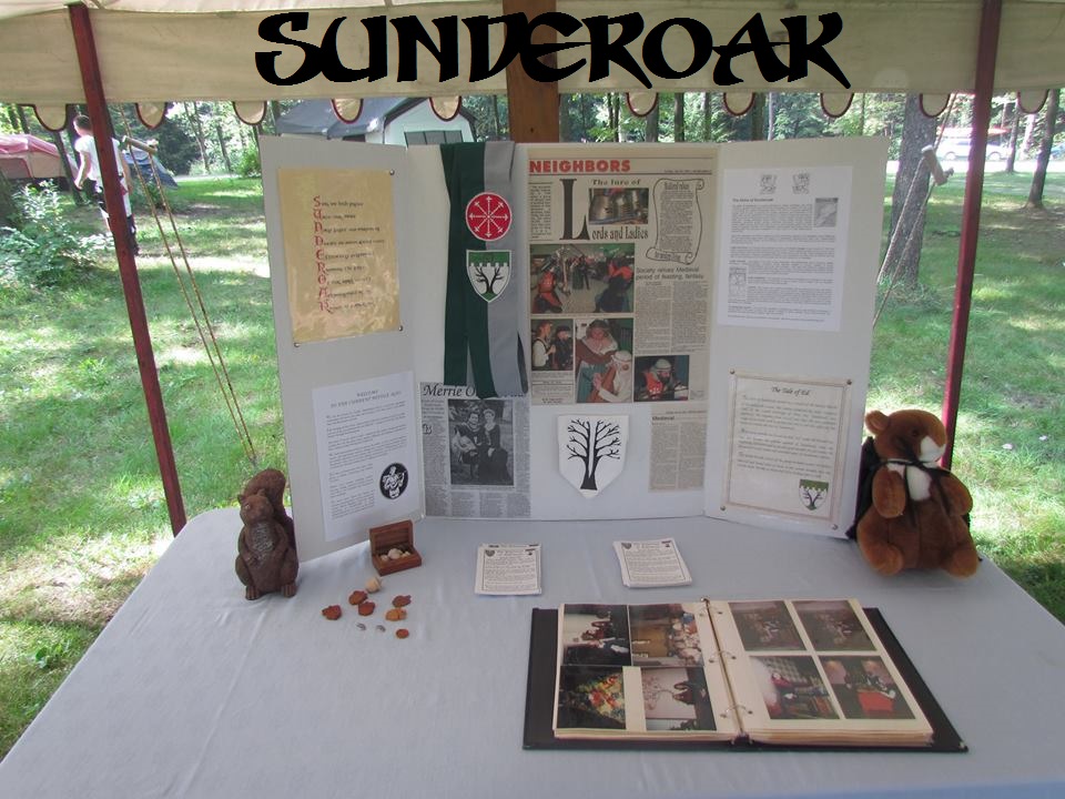 The Shire of Sunderoak is part of the Society for Creative Anachronism, Inc.; a worldwide non-profit organization dedicated to researching and recreating the Middle Ages and Renaissance.The time period of the SCA is roughly from the fall of Rome to the reign of Queen Elizabeth I of England, or approximately 470 A.D. to 1600 A.D. Members of the SCA try to re-create the atmosphere and events of Europe as it existed at that time.If you've never been to an SCA event, here is a site that shows who we are and what we do.